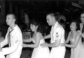 3 1961 West Pac Cruise - Ken Fox Photo OI Division Paerty - Sasebo Lee Koski on left, other is unknown |